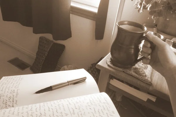 Second cup of coffee. Feeling better and less melancholy. Had some OJ, but no breakfast in the house, so I'll be on my way after my shower to find something to eat. But no worries. I'm rarely hungry when I first get up and today is no exception. Clean breeze blowing and ruffling my shirt sleeves. Children laughing and playing – talking and yelling behind me across the street--probably at a nursery school or day care center. The fountain below in the courtyard spills water continuously. I can hear it below me. A small engine wines a block or so over. Someone is doing yard work. I move around the table as the sun moves.